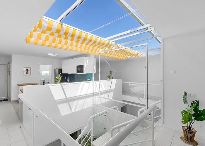 Casa Jameo, Con Vistas Al Cielo Appartamento, di 120 m^2, si trova a Puerto del Carmen, a soli 550 metri dalla Playa Blanca, e offre servizi benessere come un solarium e una piscina all'aperto. Goditi una passeggiata fino allo Zoo Rancho Texas Lanzarote Park, situato a circa 2 km dall'appartamento.